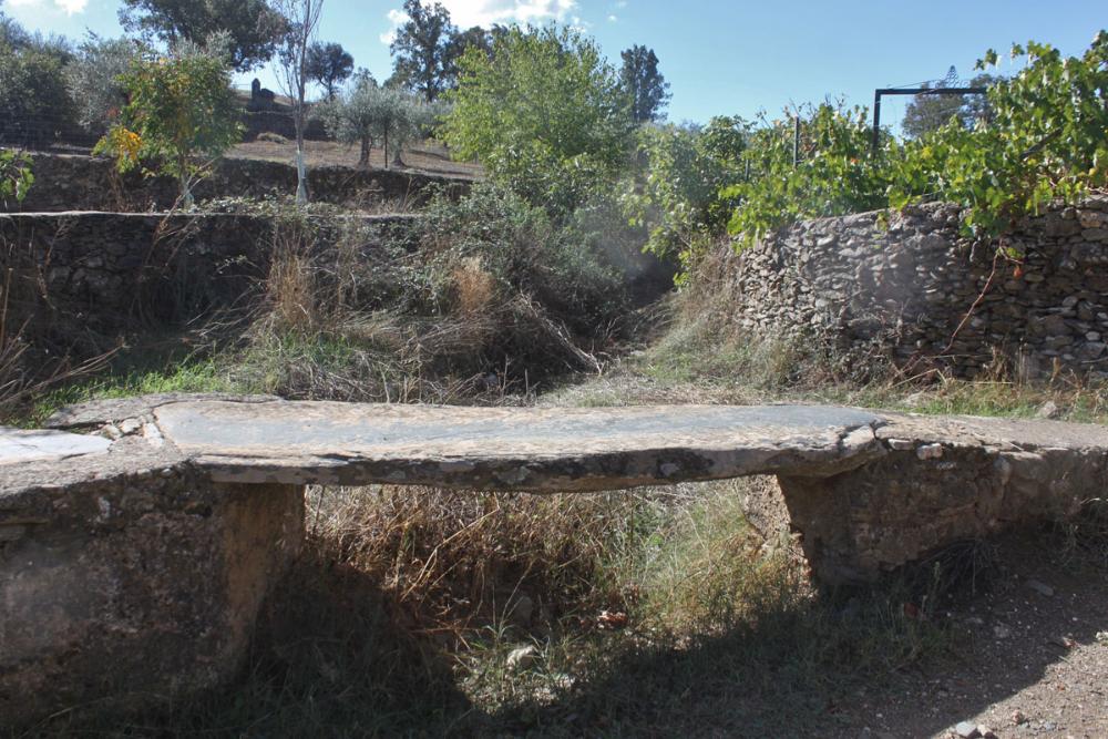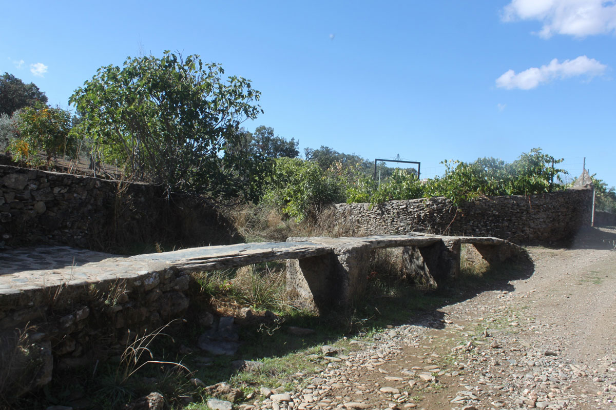 Son tres grandes piedras de pizarras muy duras, puestas una a continuación de la otra, sobre sencillos pilares. Tiene poca altura, ya que las avenidas no son demasiado frecuentes. El gran pulido de las lanchas nos habla de los muchos pasos que lo han cruzado.